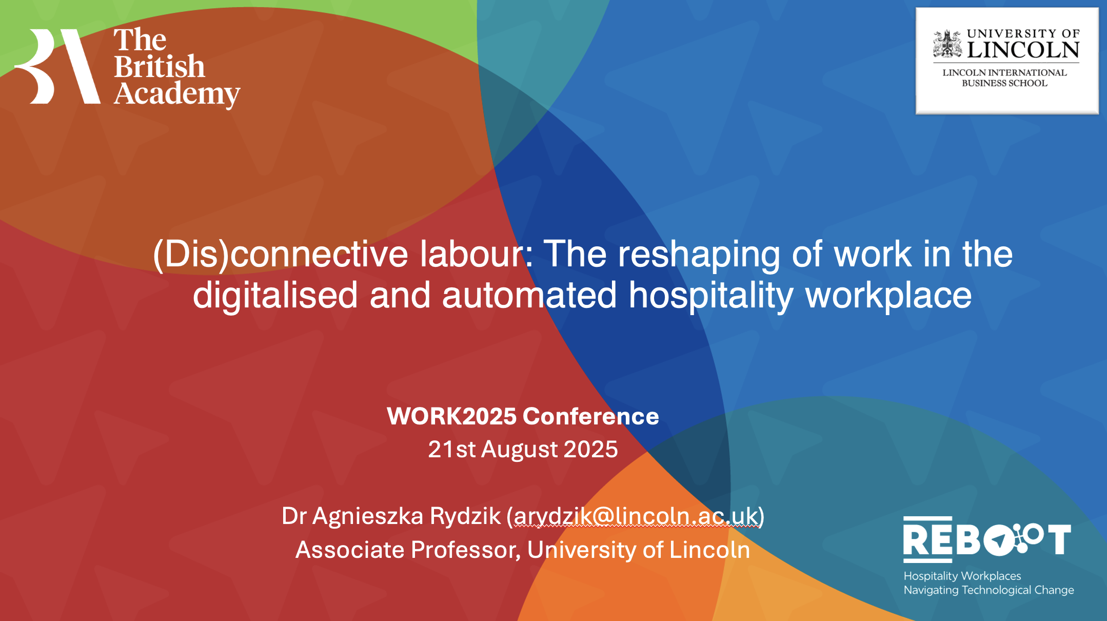 In my presentation, drawing on data from interviews with hospitality workers, managers and a range of stakeholders, I focused on the nature of human connection in hospitality (work)spaces, how it’s increasingly mediated via technology and the ways in which it reshapes workplace interactions.