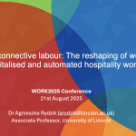 - ‘(Dis)connective labour: The reshaping of work in the digitalised and automated hospitality workplace’ – Conference presentation at the WORK2025 Conference in Turku, Finland